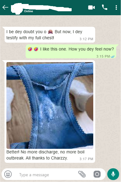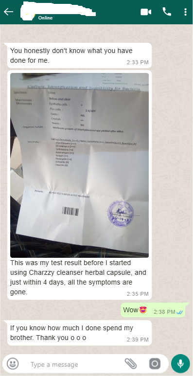 Charzzy cleanser is the only permanent treatment for stubborn Infection. Refund available if Charzzy did’t work for you after using recommended dosage. 100% NAFDAC APPROVED A7-101846L | 100% MONEY-BACK GUARANTEED