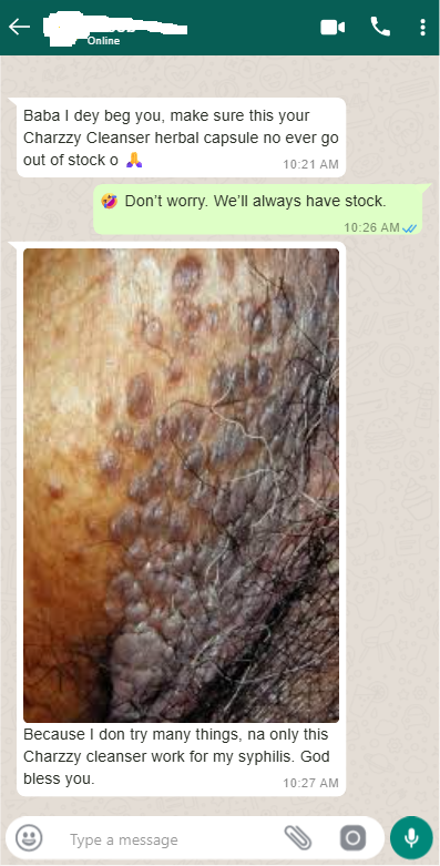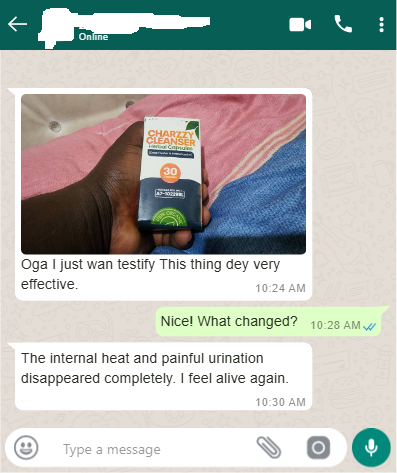 N.B: Charzzy cleanser is the only permanent treatment for stubborn Infection. Refund available if Charzzy did’t work for you after using recommended dosage. 100% NAFDAC APPROVED A7-101846L | 100% MONEY-BACK GUARANTEED